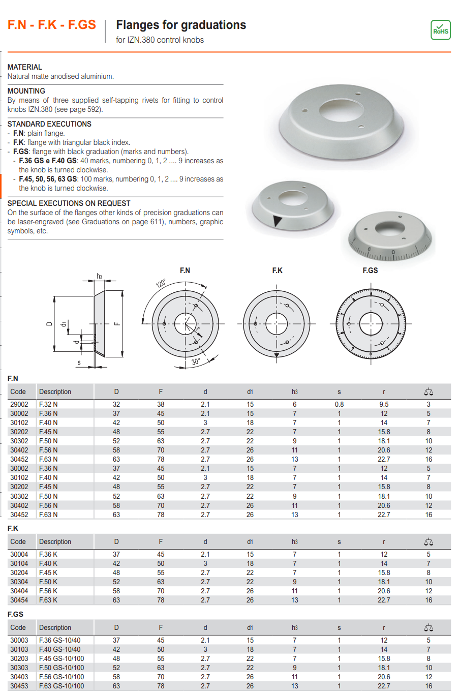 F.K 플랜지 (컨트롤 널링 노브 용, 화살표시)