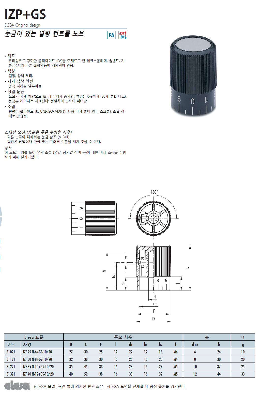 IZP+GS 컨트롤 널링 노브 (테크노폴리머, 격자표시)