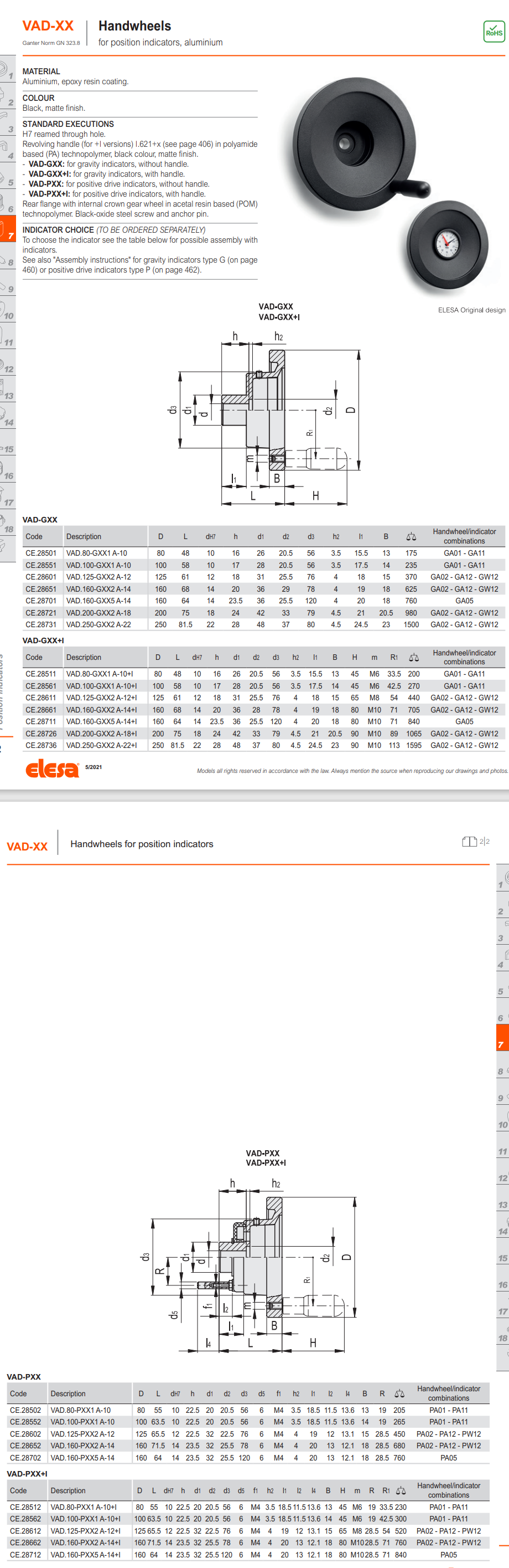 VAD-PXX 포지션 인디케이터 용 핸드휠 (알류미늄, 포지티브 드라이브)