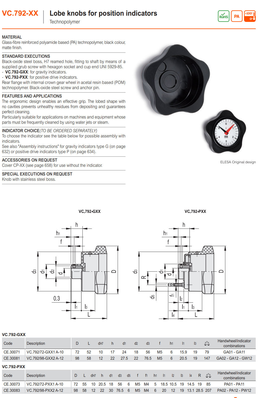 VC.792-GXX 포지션 인디케이터 용 노브형 핸드휠 (중력)