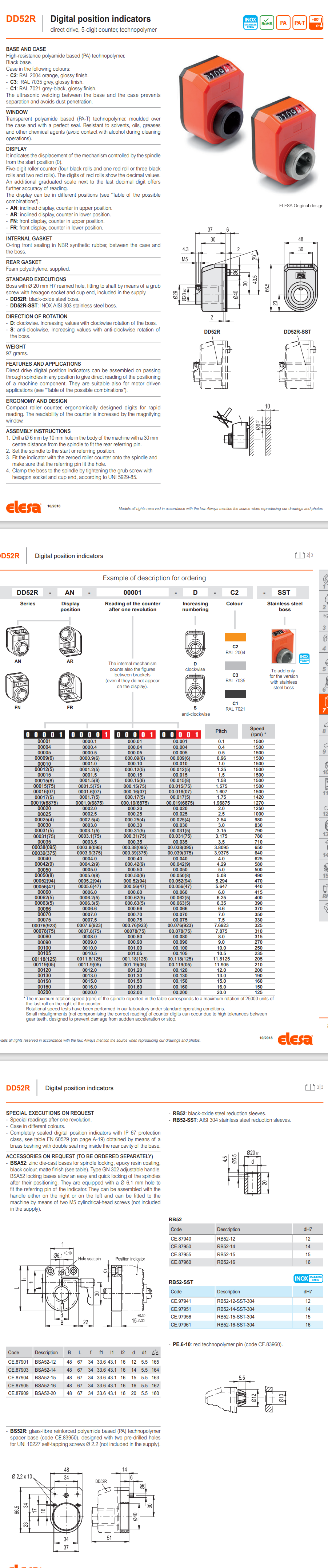 BS52R 스페이서 플레이트 (DD52R 인디케이터 용)