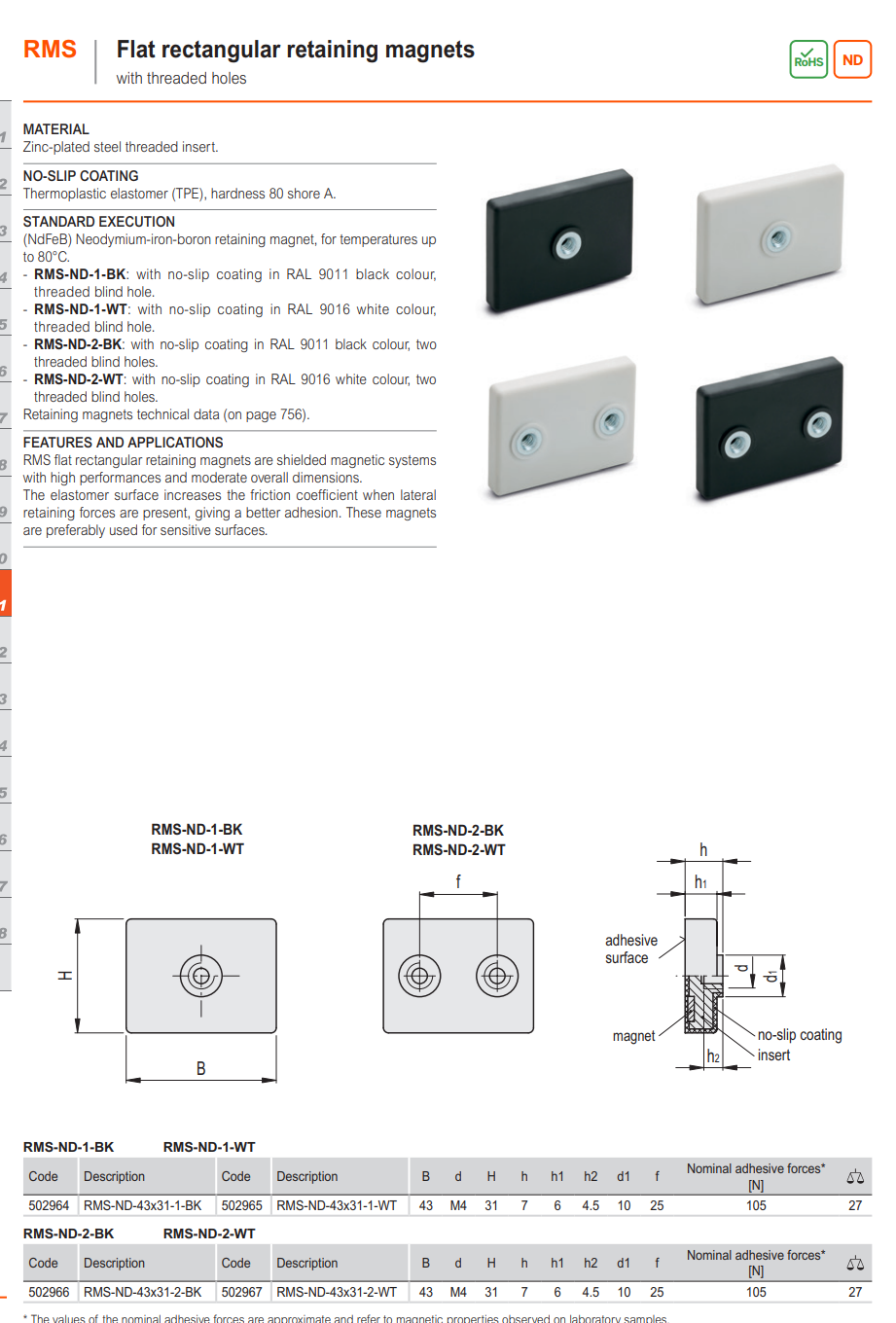 RMS-ND-2-WT 리테이닝 자석 (사각형, 미끄럼방지, 흰색)
