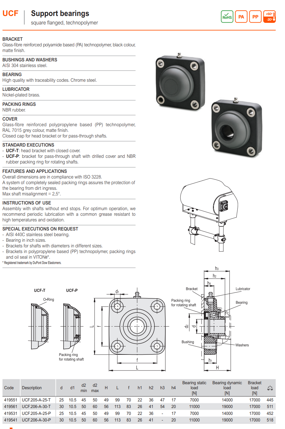 UCF-T 서포트 베어링 (닫힌 타입, 사각형)
