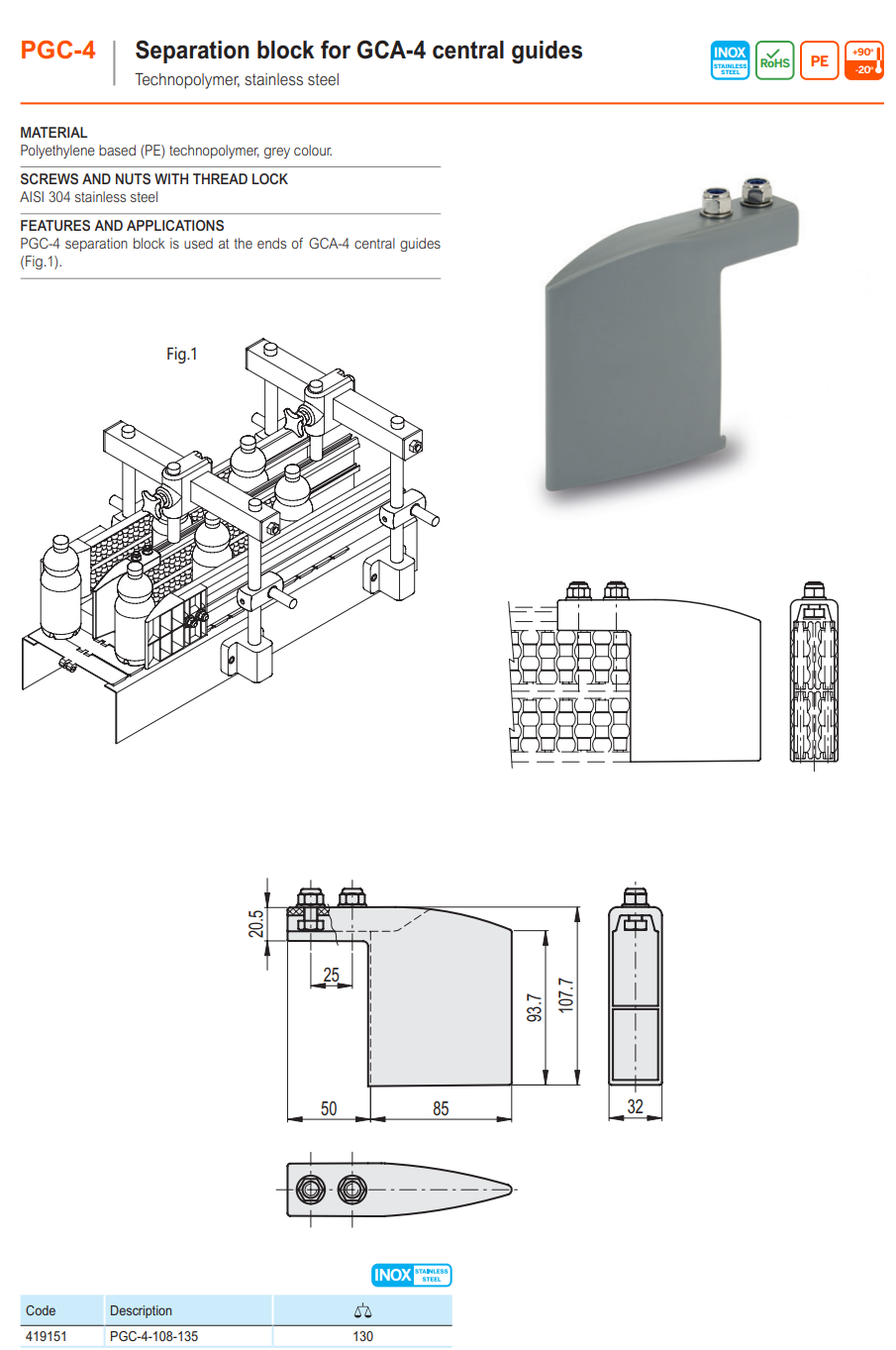 PGC-4 분리 블록 (GCA-4. 용, 스테인리스)