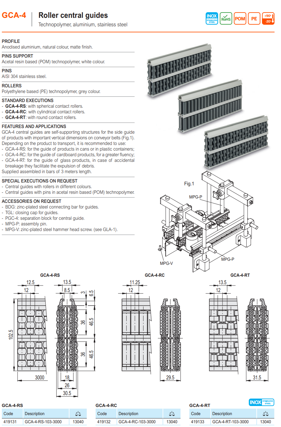 GCA-4-RT 롤러 가이드 (중앙 설치 타입, 원형 롤)