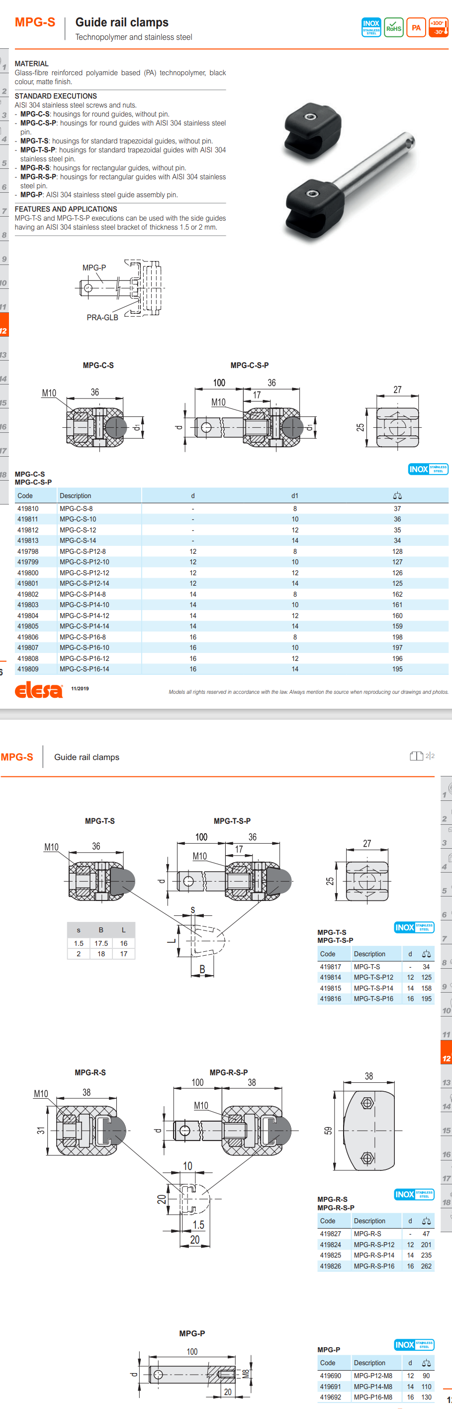 MPG-R-S-P 레일 클램프 (사각 가이드용, 핀 포함)