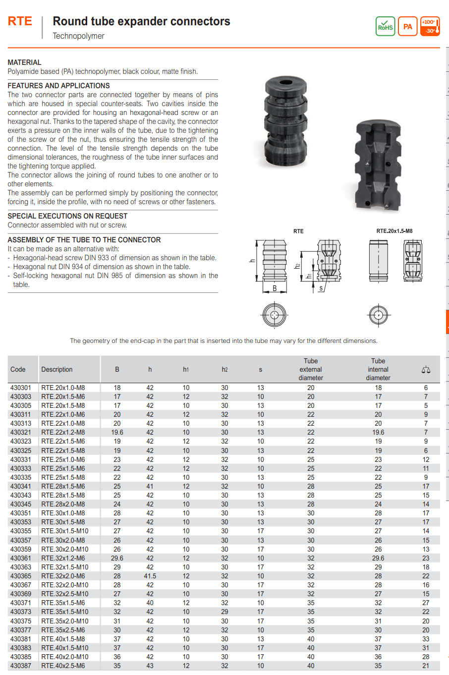 RTE 튜브 커넥터 (원형튜브용, 확장형)