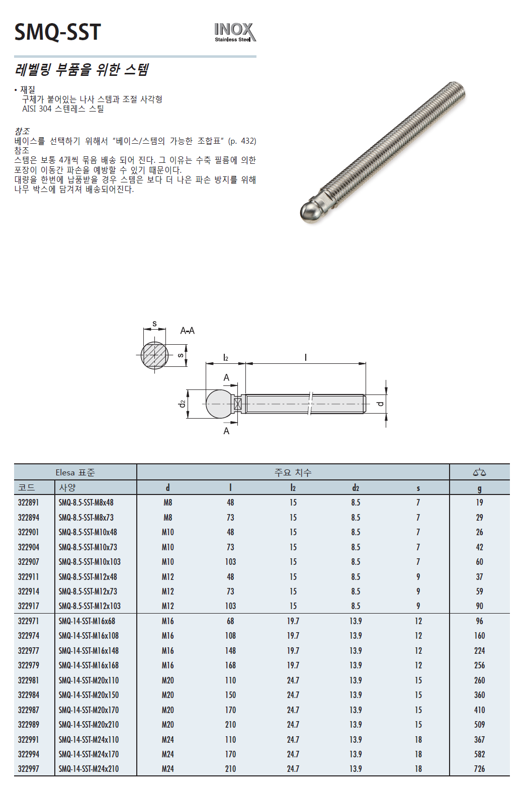 SMQ-SST 스템 (스테링리스 레벨링 부품 용)