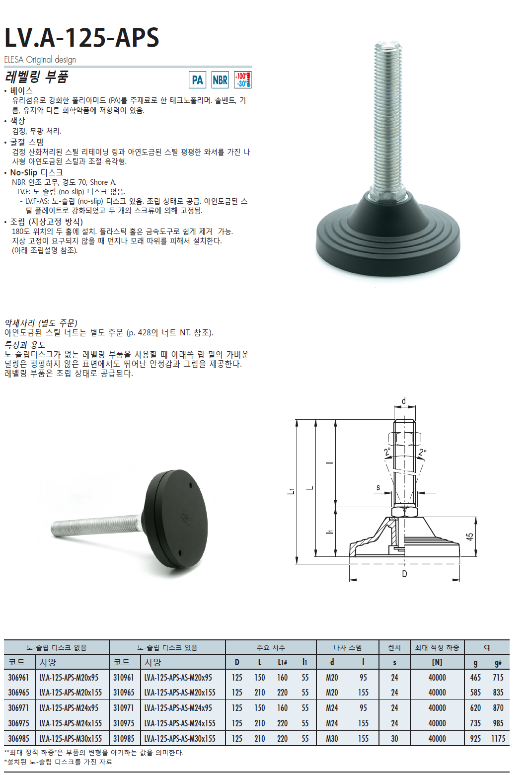 LV.A-125-APS 레벨링 부품 (아연도금 스틸)