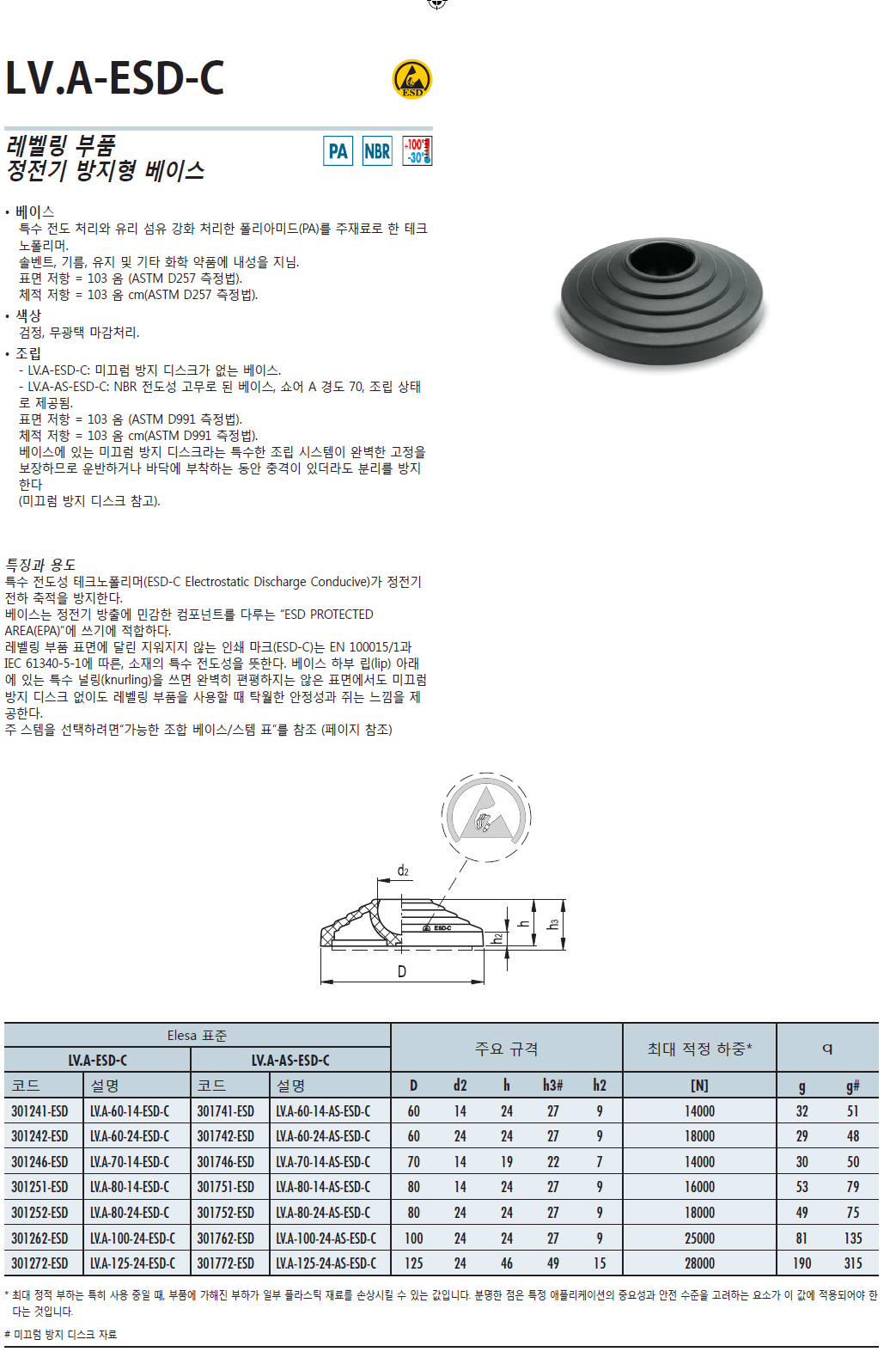 LV.A-ESD-C 레벨링 부품 (아연도금 스틸 및 정전기방지)