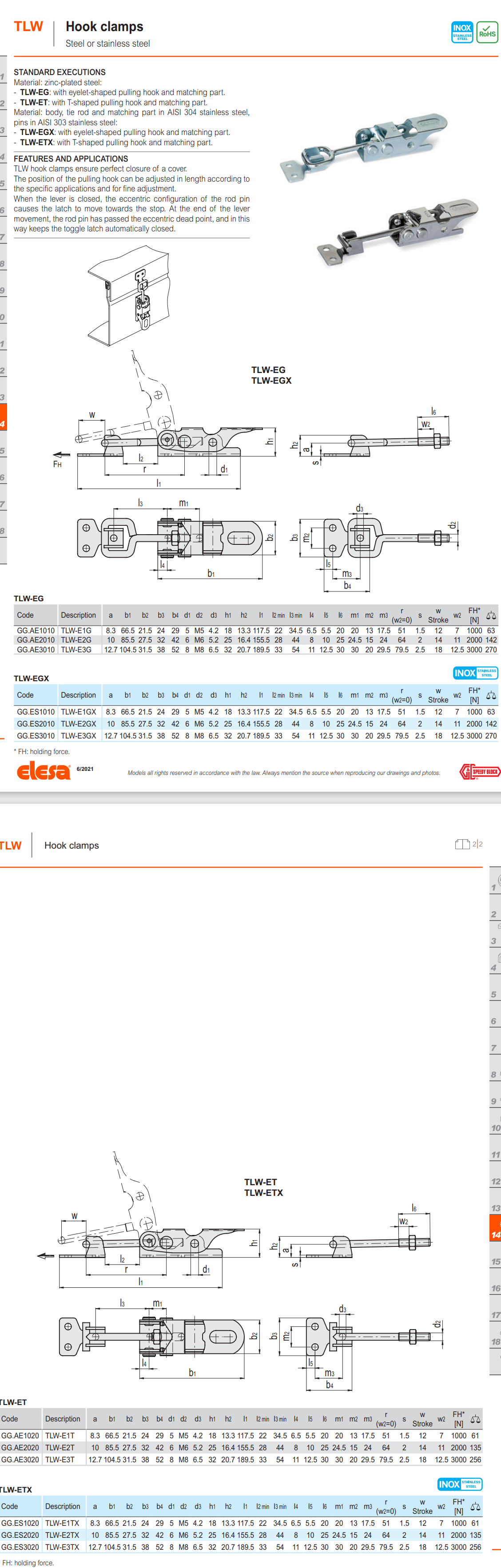 TLW-ETX 토글 클램프 (래치 타입, 후크 체결, 스테인리스)