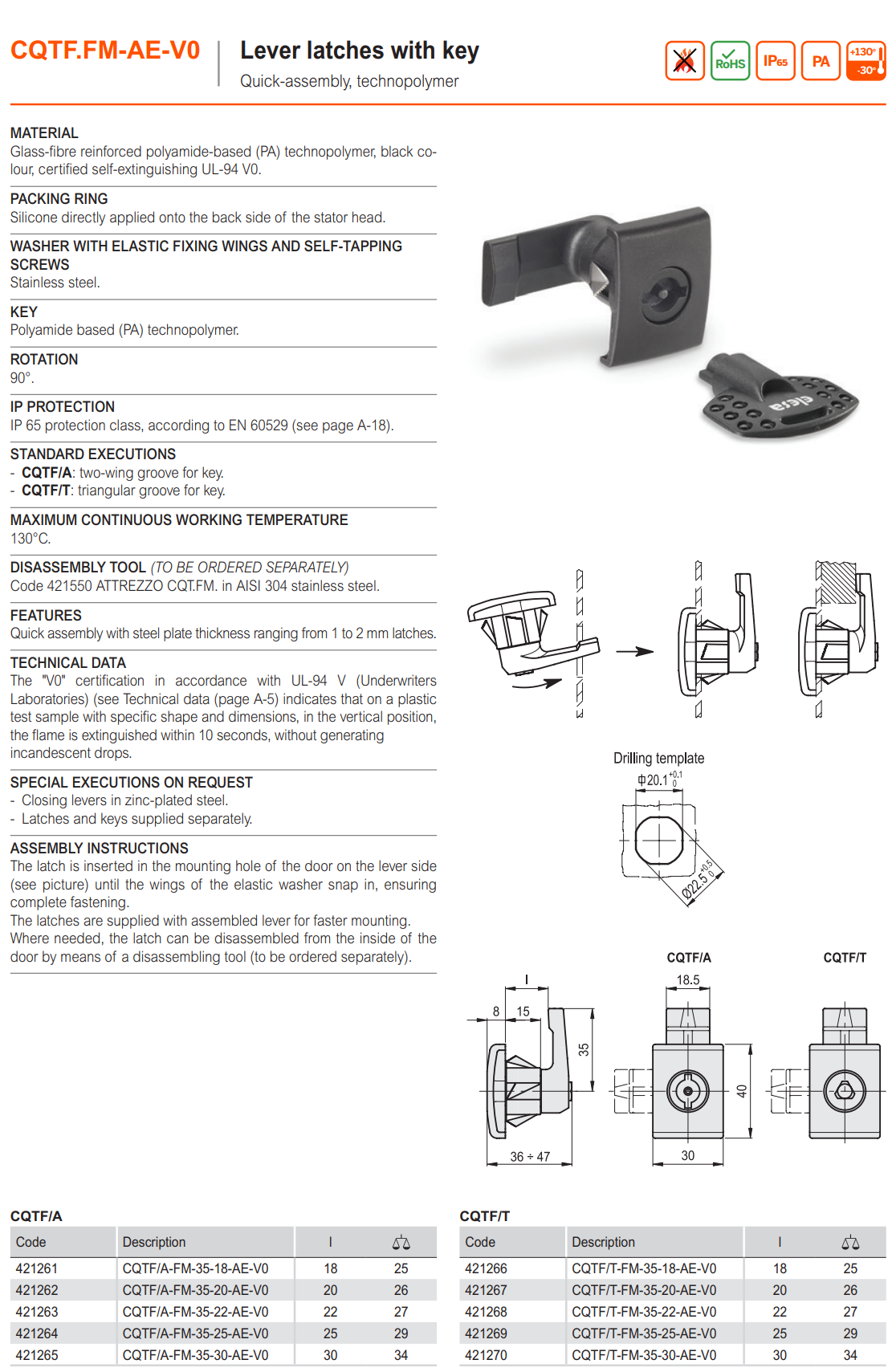 CQTF.FM-AE-V0 래치 (키 포함, 빠른 체결)