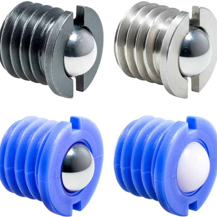 body from free cutting steel, ball from stainless steel, standard spring load |