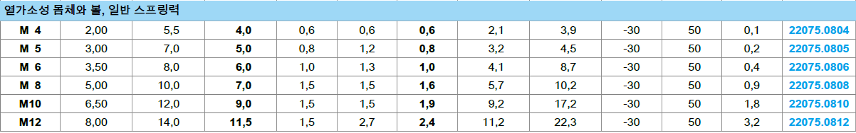 열가소성 몸체와 볼, 일반 스프링력 |