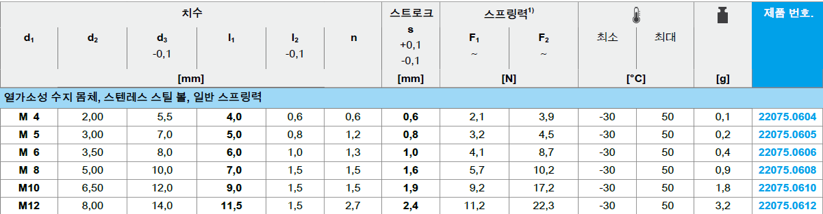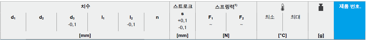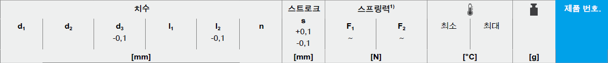 n | 스트로크 s +0,1 -0,1 [mm] | 스프링력1)
