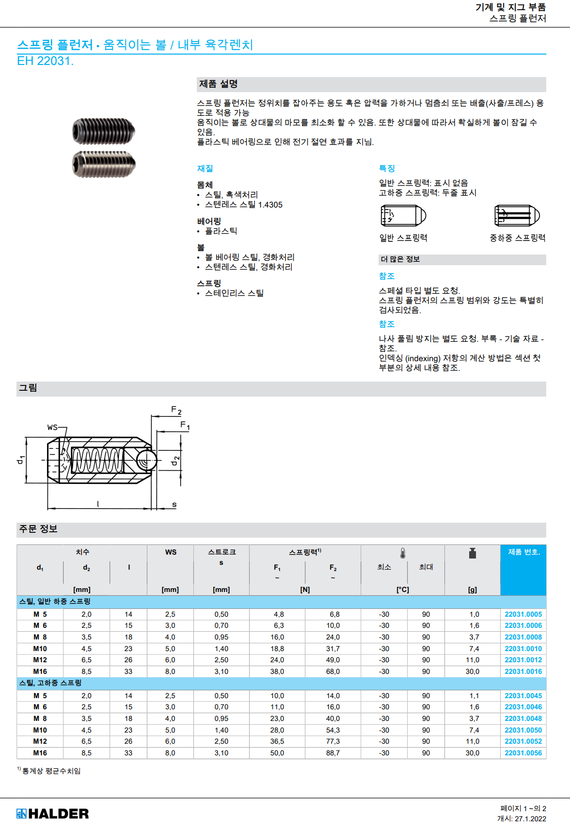 볼플런저 스프링플런저_움직이는볼 / 내부육각렌치형 / EH 22031.