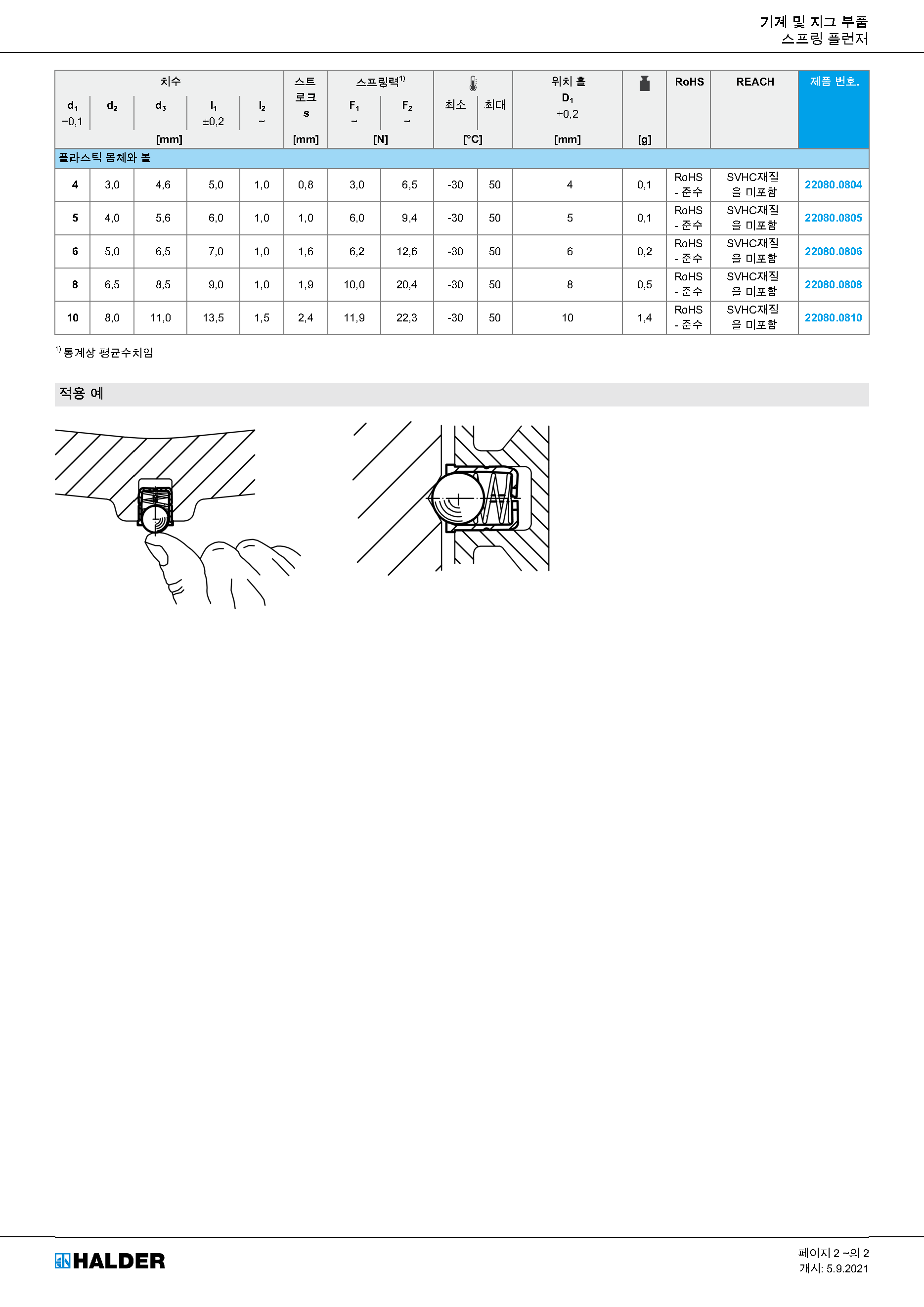 할더스프링플런저(민자/확장형/칼라,볼)입니다.