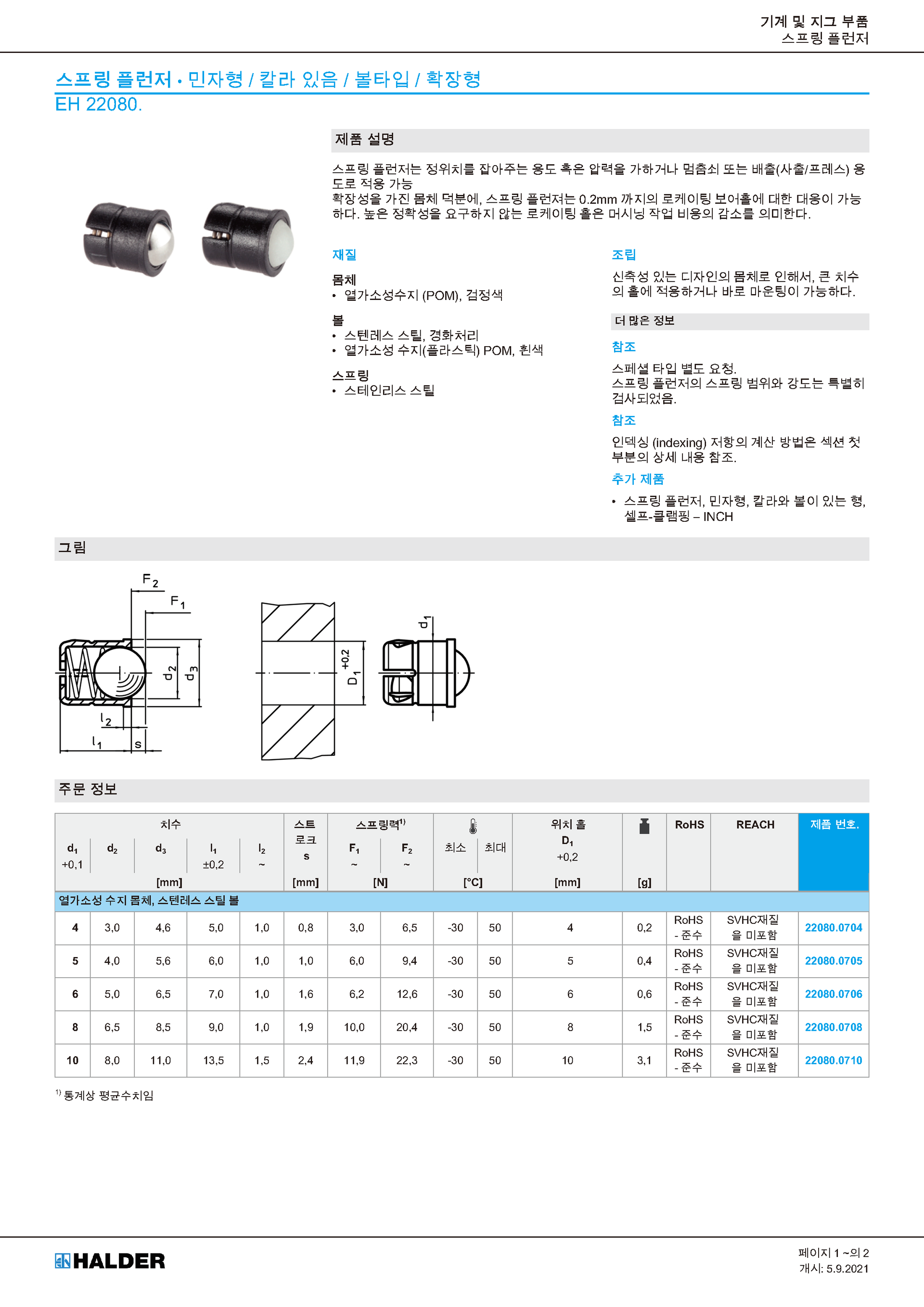 스프링플런저_민자형/칼라와볼/확장형 / EH 22080.