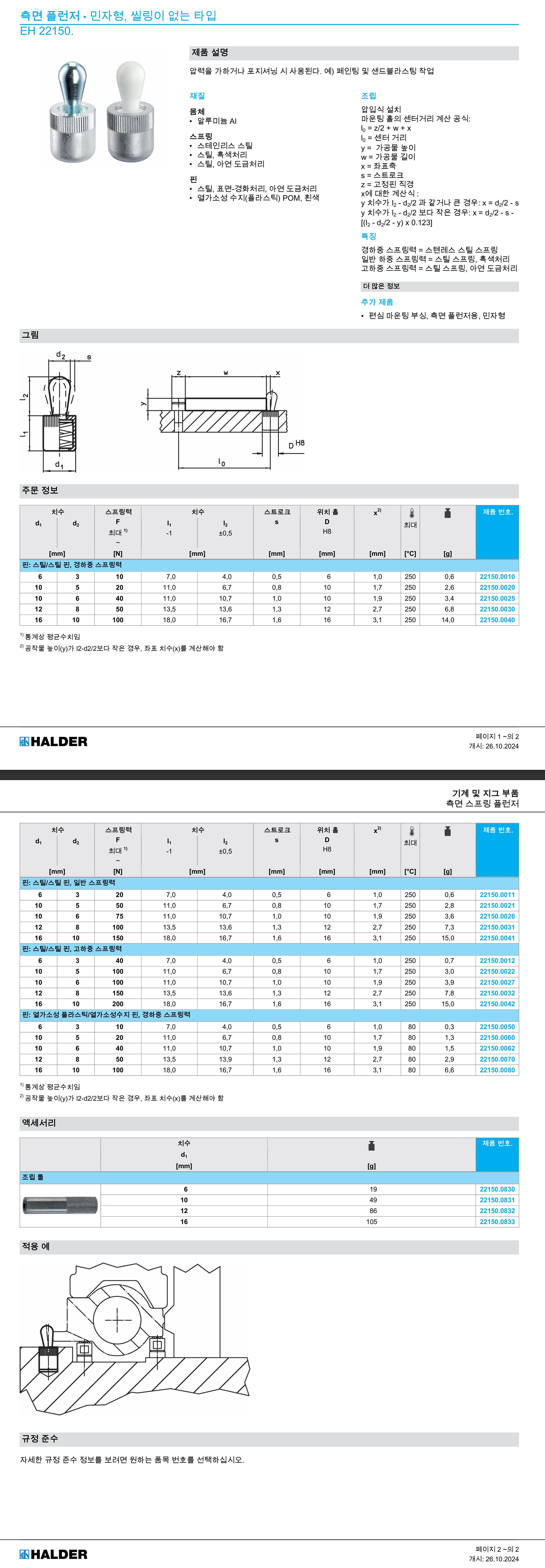 측면 스프링 플런저_민자형,씰링없음 / EH 22150.