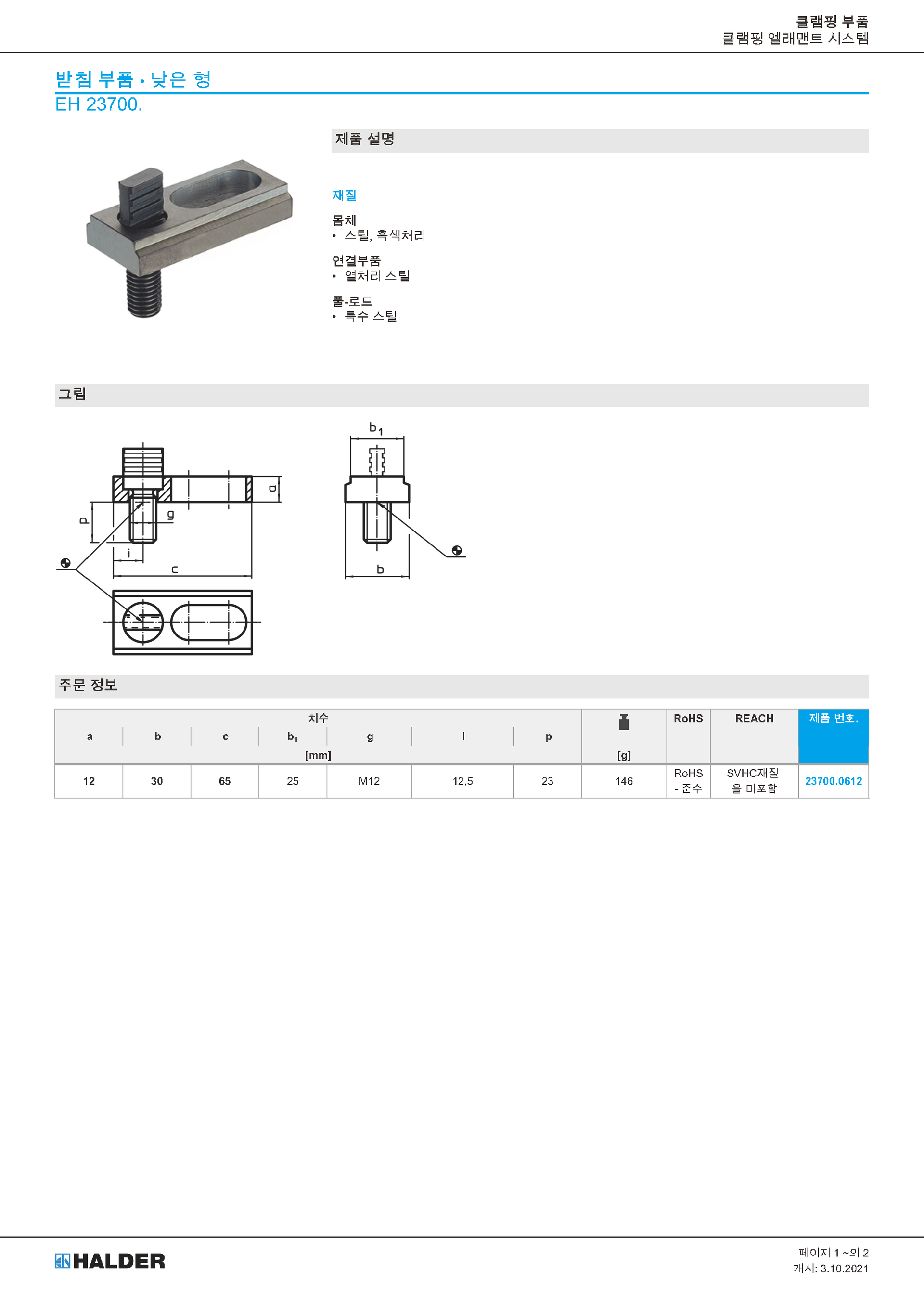 받침 부품 낮은 형 / EH 22370.